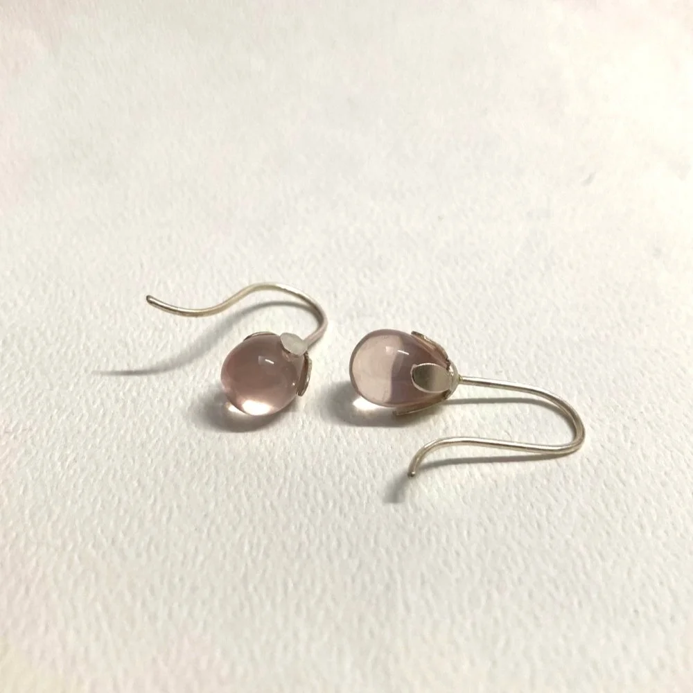Simple drop earrings highlighting beautiful Australian rose quartz set in silver floral inspired setting. Perfect to wear on any occasion.